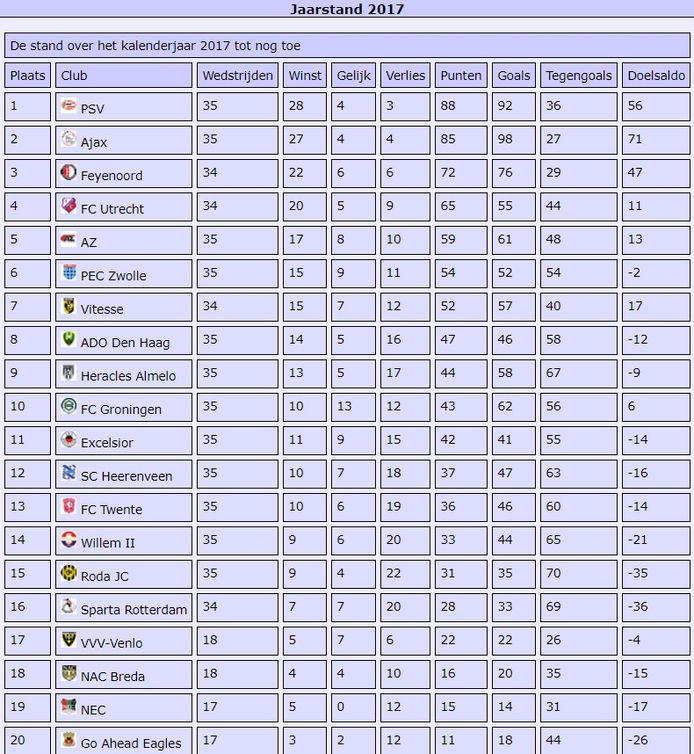 Psv Kampioen Van Kalenderjaar 2017 Nederlands Voetbal Ad Nl