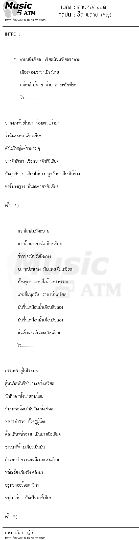 เน อเพลง เน อเพลง ตายหย งเข ยด อ ด ฟลาย Fly เพลงอ นด Popasia เน อเพลง คอร ดเพลงใหม ๆ 1 ประเทศไทย
