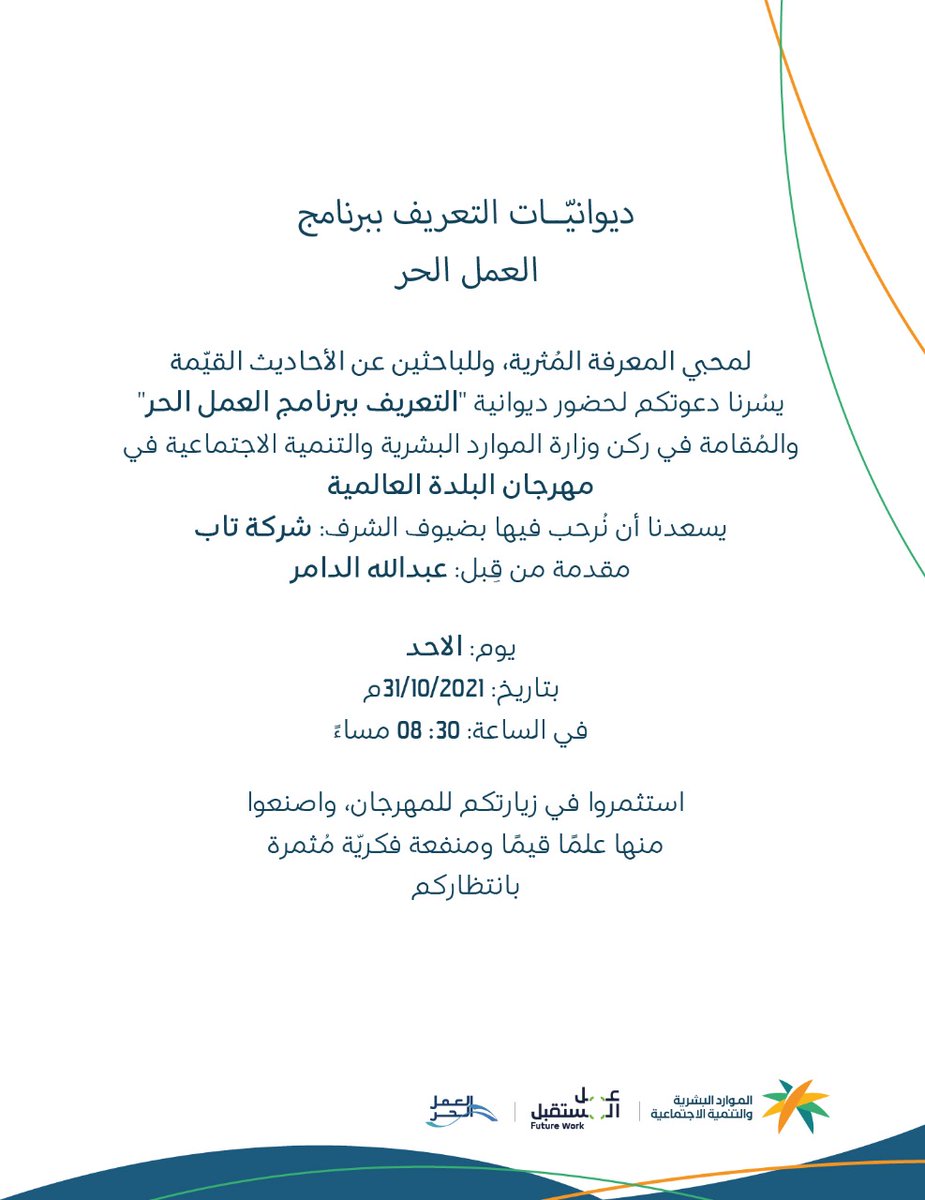 الموارد البشرية والتنمية الاجتماعية العمل الحر. قامت وزارة الموارد البشرية والتنمية الاجتماعية بالمملكة العربية السعودية بإطلاق منصة العمل الحر الإلكترونية وتعد منصة العمل الحر من ابرز المنصات الإلكترونية الحكومية التي انتشرت مؤخرا لخدمة المواطنين بالمملكة. يشكل التمويل التنموي للعمل الحر لاعبا رئيسا في تعزيز كفاءة وفعالية الراغبين بخوض العمل الحر و رفع انتاجيتهم و مهاراتهم و خبراتهم في اعمال ملائمة و مستقرة و منتجة عليه عمل بنك التنمية. وقالت لـالاقتصادية وزارة الموارد البشرية والتنمية الاجتماعية بلغ عدد المسجلين في 2021 حتى الآن 292315 شخصا في حين بلغ عدد المسجلين خلال.