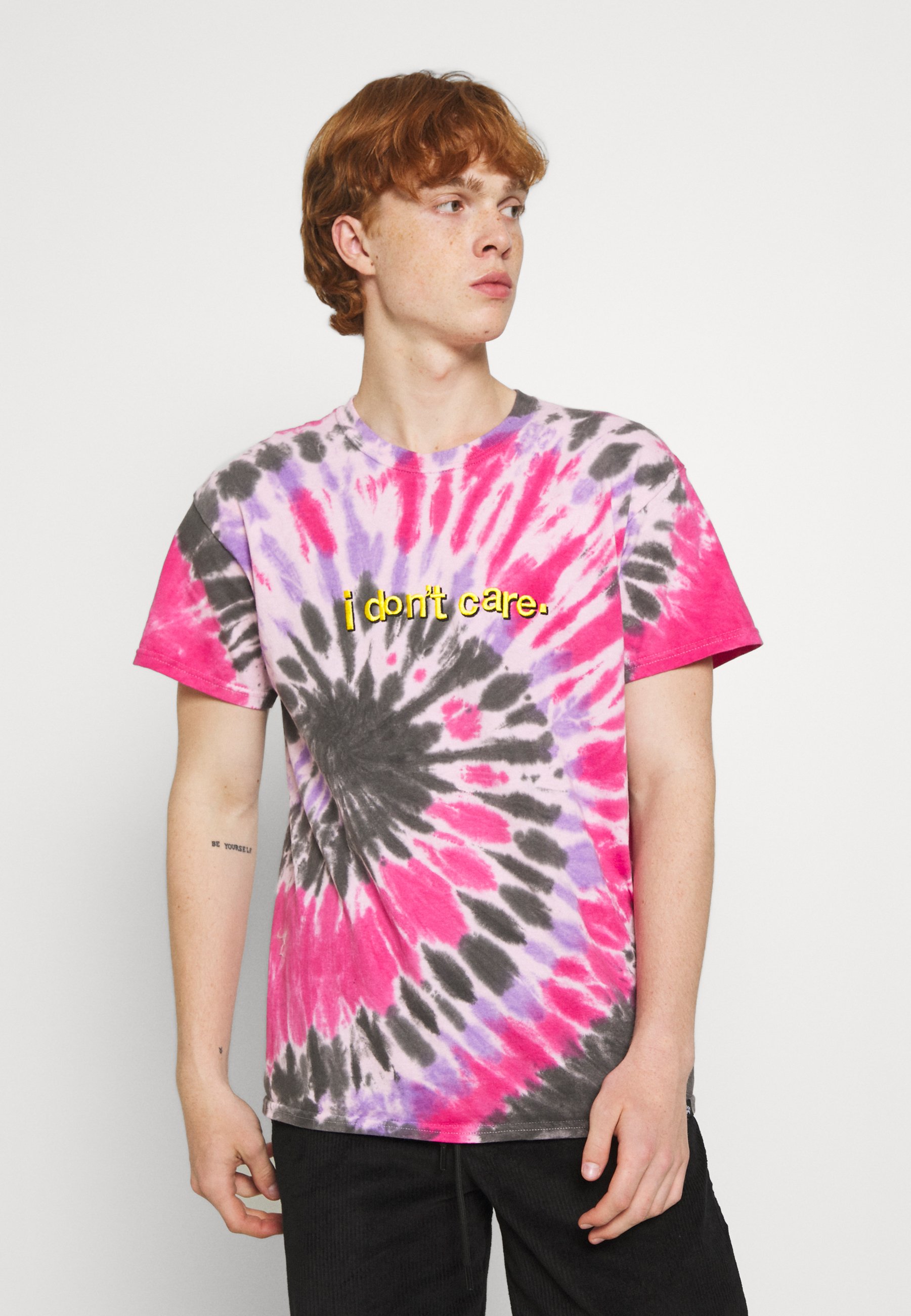Vintage Supply I Don T Care Graphic Tye Dye Tee T Shirt Print Pink Donkerroze Zalando Nl